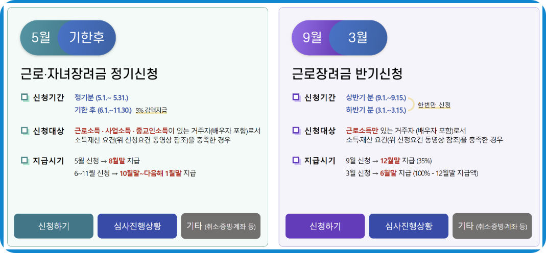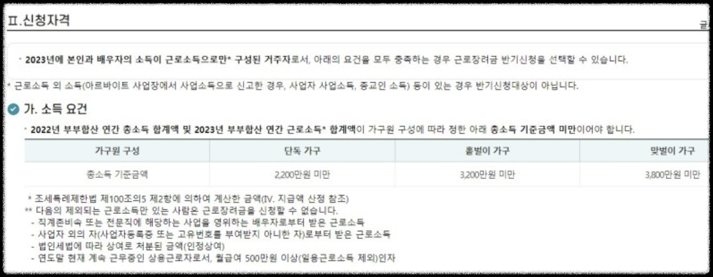 | 반기신청 | 근로소득자 | 23년 상반기 소득 | 23.09.01 ~ 24.09.15 | 23년 12월말 |