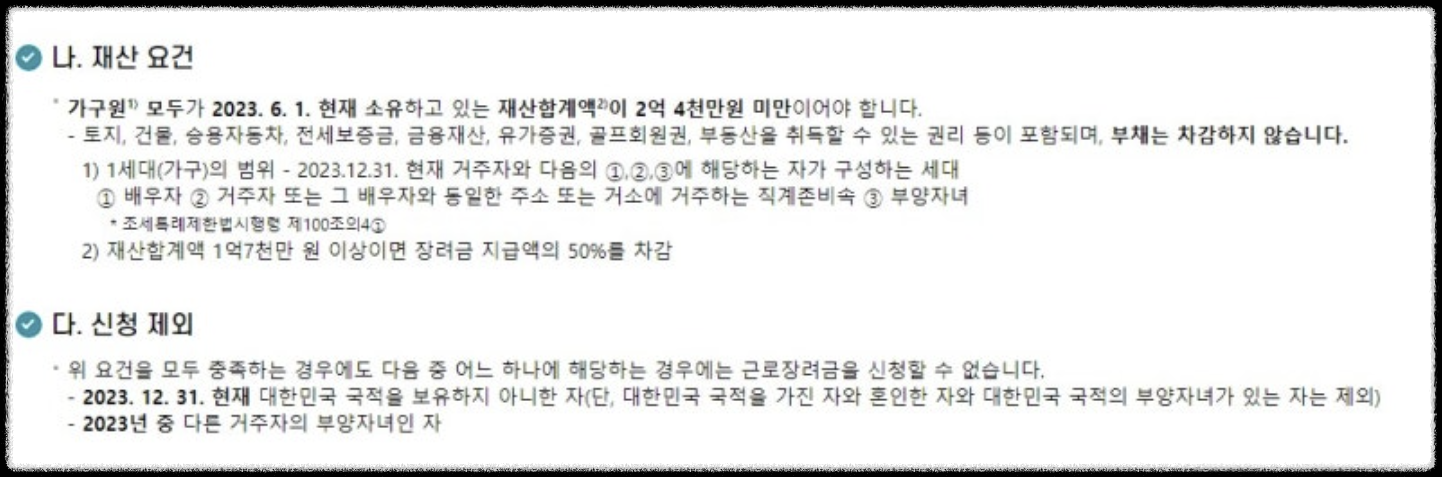 | '23년 9월에 근로장려금 반기 신청한 사람은 12월말에 35% 일부 지급 3월에 신청한 사람과 같이 6월말에 100%를 채워 지급 받음 |