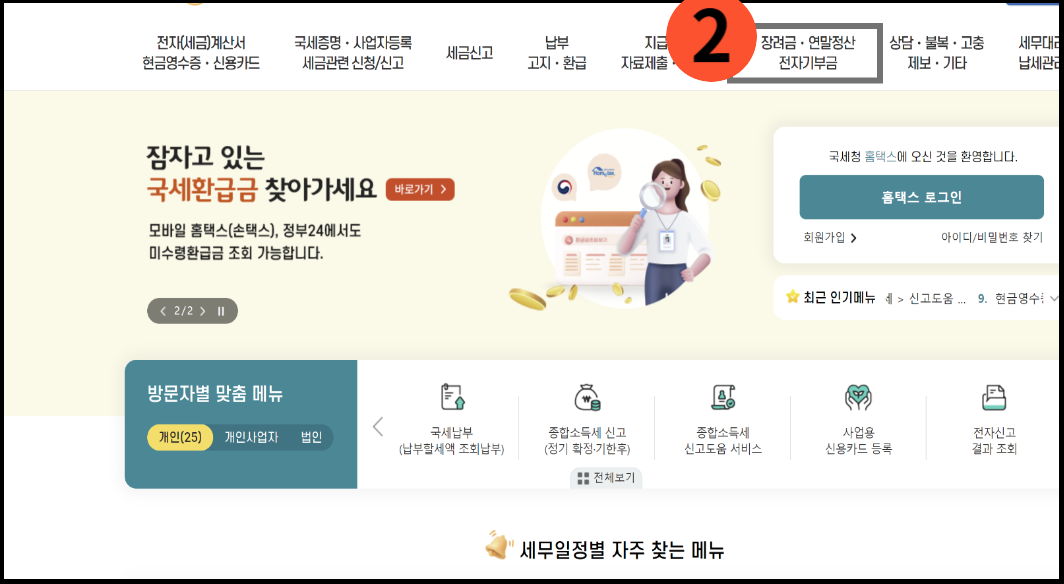 홈택스는 PC로 접속하면 나오는 국세청 홈페이지입니다.