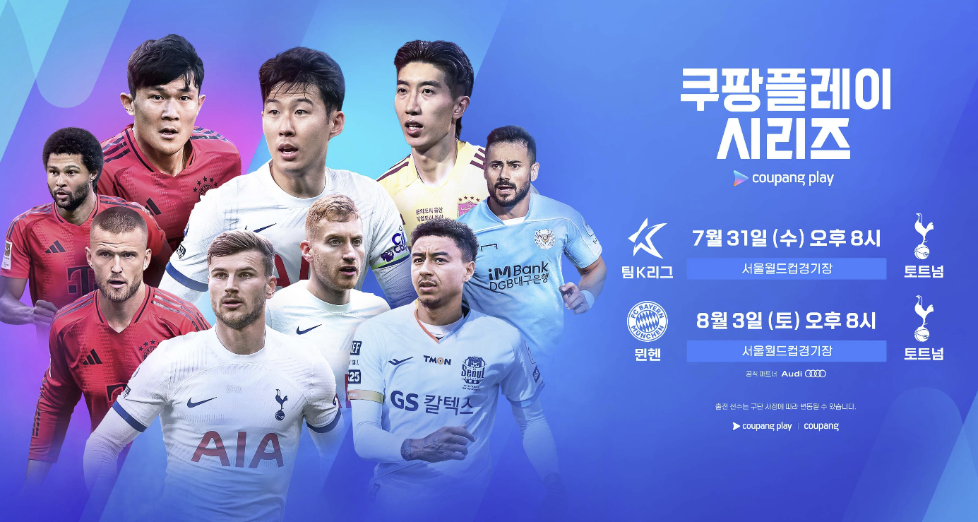 이번 토트넘 vs 팀 k리그 / 토트넘 vs 뮌헨의 경기 중계방송은 쿠팡플레이에서 단독으로 방송됩니다.